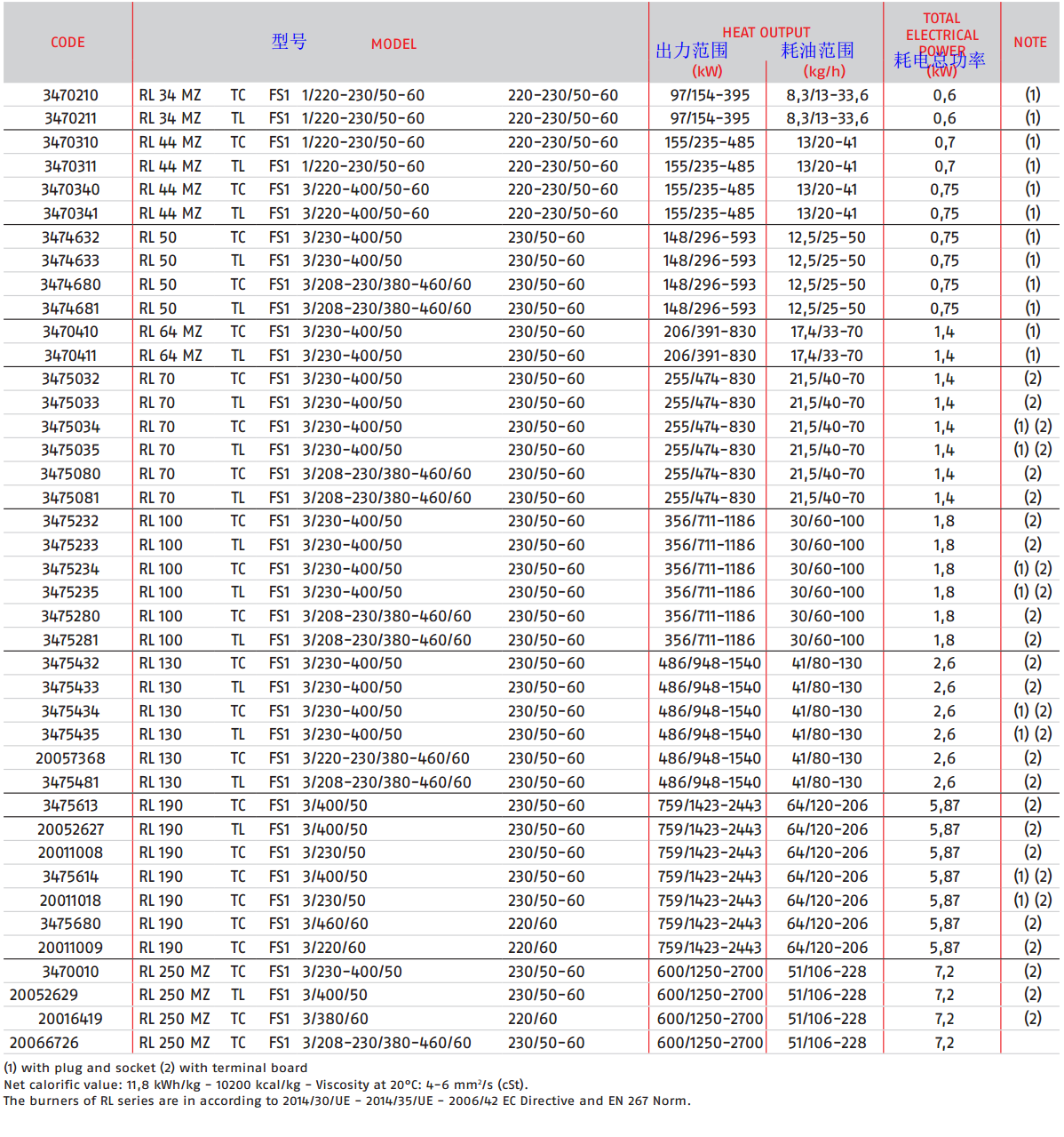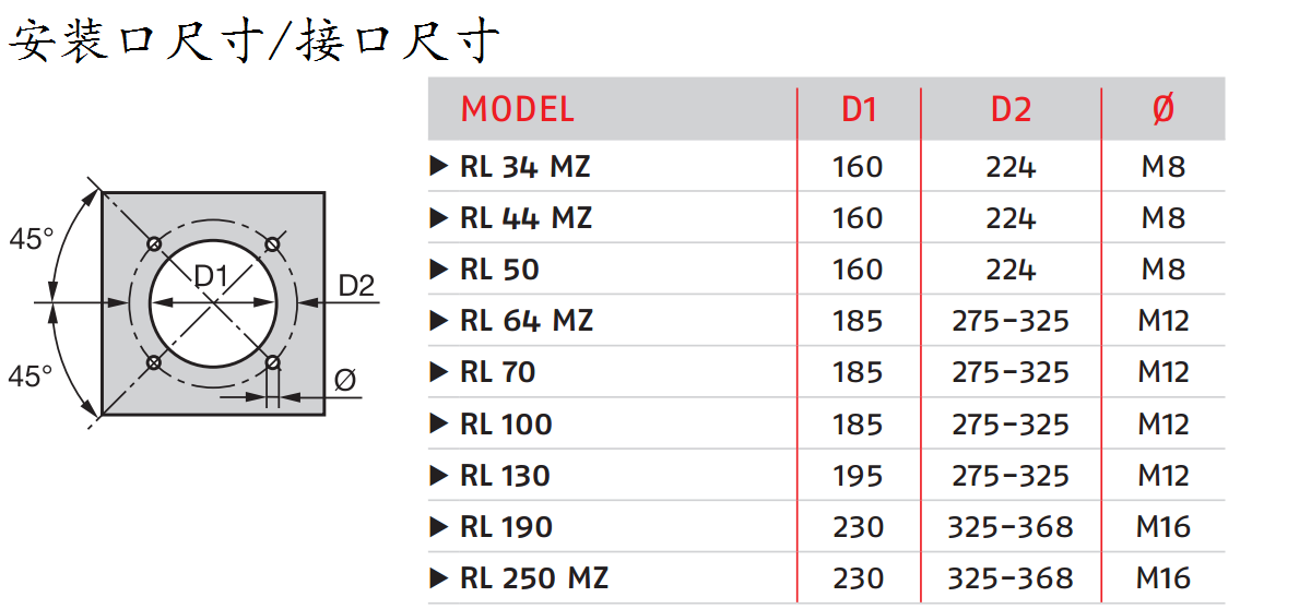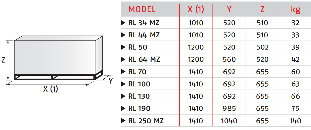 RL34/1 RL34MZ RL44MZ RL50 RL64MZ RL70 RL100 RL130 RL190 RL250ZM