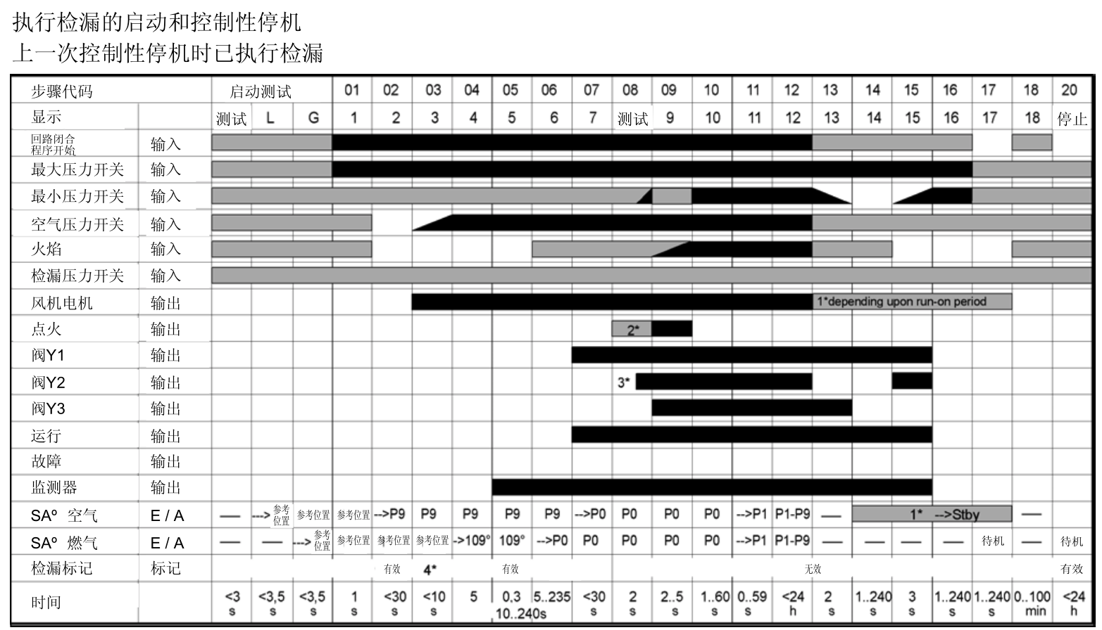 掉電后或者內(nèi)部故障鎖定解鎖后,燃燒器重啟前系統(tǒng)要執(zhí)行一次檢漏。