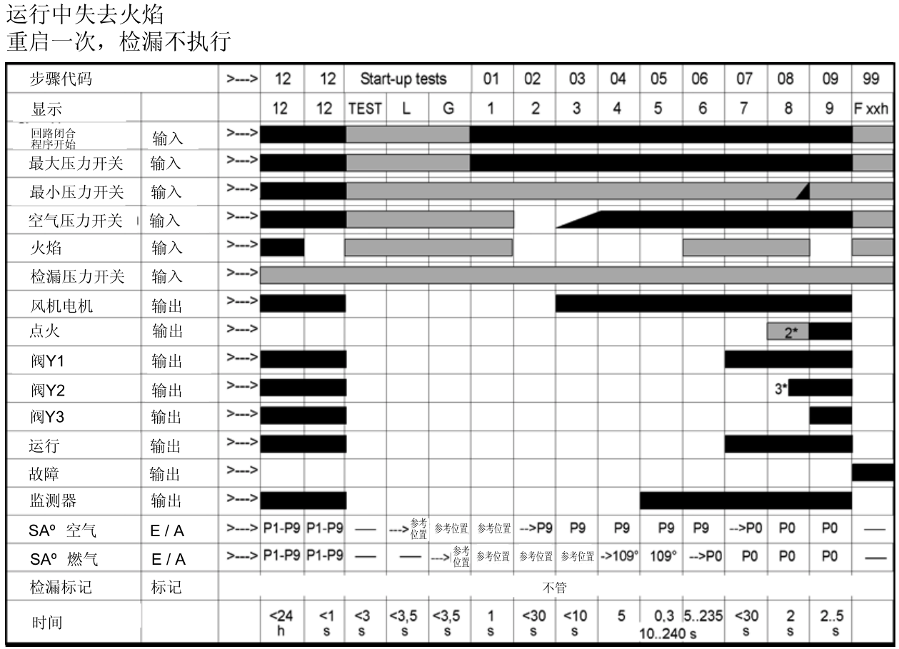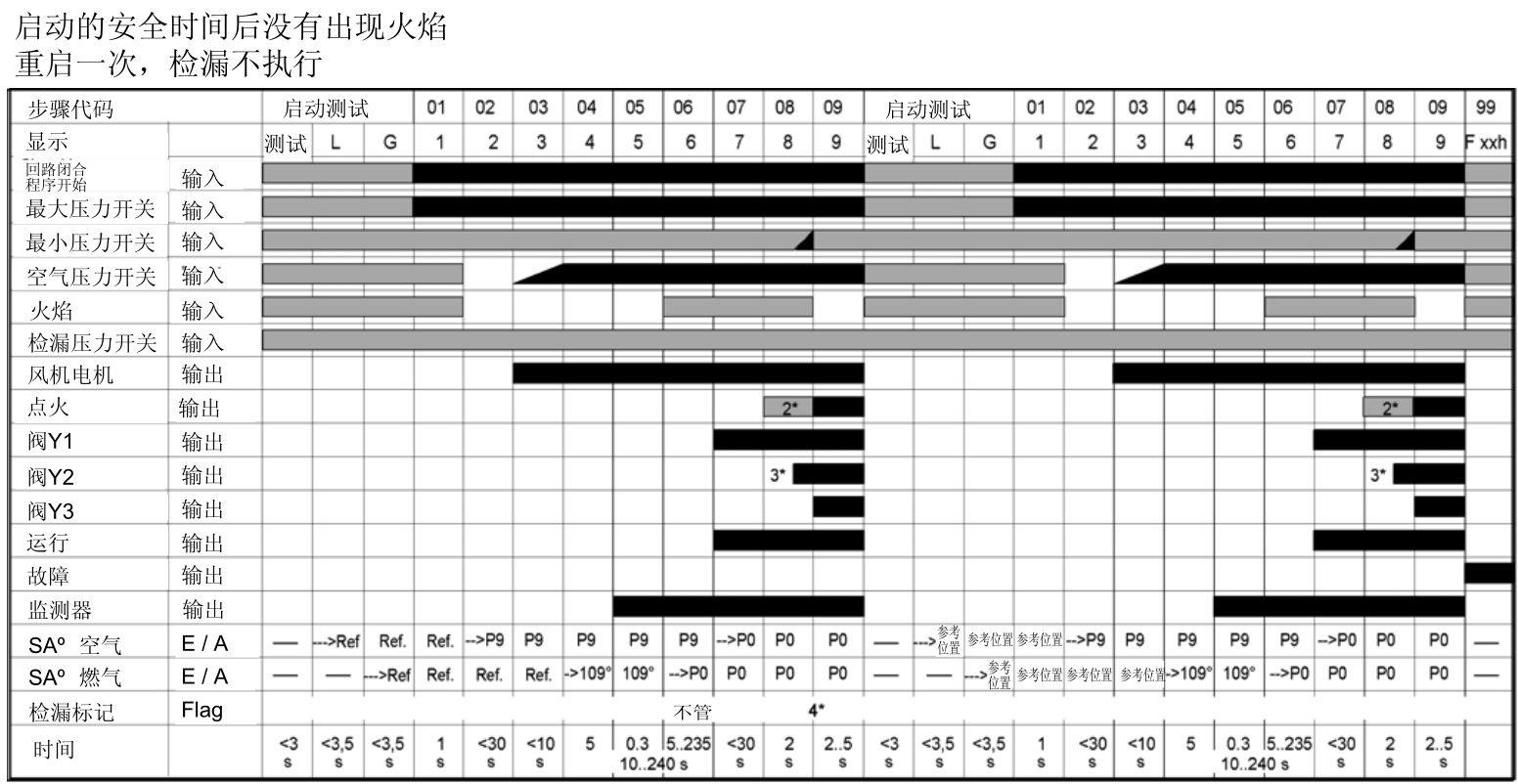 如果啟動(dòng)安全時(shí)間過(guò)后沒(méi)有火焰出現(xiàn),則故障鎖定。